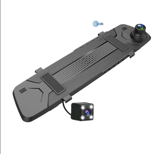 Dual Lens Car Mirror with Integrated Dash Cam, Optional Reverse Camera, 4.5-Inch Screen & 64GB Memory Card
